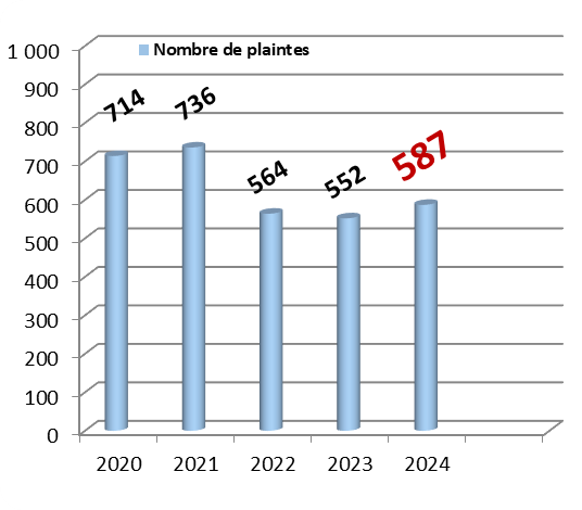 Au cours de l’année 2024, 587 plaintes ont été adressées au Jury de Déontologie Publicitaire (JDP) ; ce qui correspond à une hausse de 6,3 % par rapport aux plaintes traitées en 2023 (552), mais représente un total de plaintes bien inférieur à celles reçues en 2020/2021, voire des records de 2014 (3171 plaintes) et de 2017 (2338 plaintes), ou des 797 plaintes en 2019, avant la Covid.