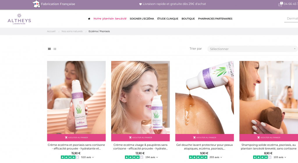 Le Jury relève que la publicité critiquée a pour objet une gamme de produits cosmétiques- crème hydratante, gel douche etc…- dont tout l’argument publicitaire consiste à faire croire que lesdits produits sont conçus pour « traiter » des maladies telles que l’eczéma, le psoriasis, la dermatite atopique, à l’instar d’une substance médicamenteuse, en raison de son « action anti-inflammatoire » et de son « efficacité prouvée cliniquement » alors que, par ailleurs, elle ne contiendrait pas de cortisone mais une substance tirée de la feuille d’une plante dénommée plantin lancéolé à laquelle le site du laboratoire Altheys consacre une pleine page.