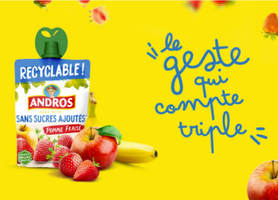 Le Jury relève que la publicité en cause invite le consommateur à effectuer le « geste qui compte triple » avec une seule gourde de compotes recyclable de la marque Andros, qui correspond à trois actions « bonnes pour vous et pour la planète », à savoir « dégustez plein de bons fruits à chaque pause », « explorez de nouvelles saveurs » et « agissez pour la planète en triant la gourde avec son bouchon ».