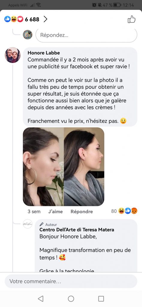 – Le plaignant énonce que la publicité est clairement mensongère avec des commentaires élogieux de faux « clients ». Selon lui, les photos « avant-après » sont retouchées, ce qui est évident même pour une personne n’ayant aucune connaissance en photographie.