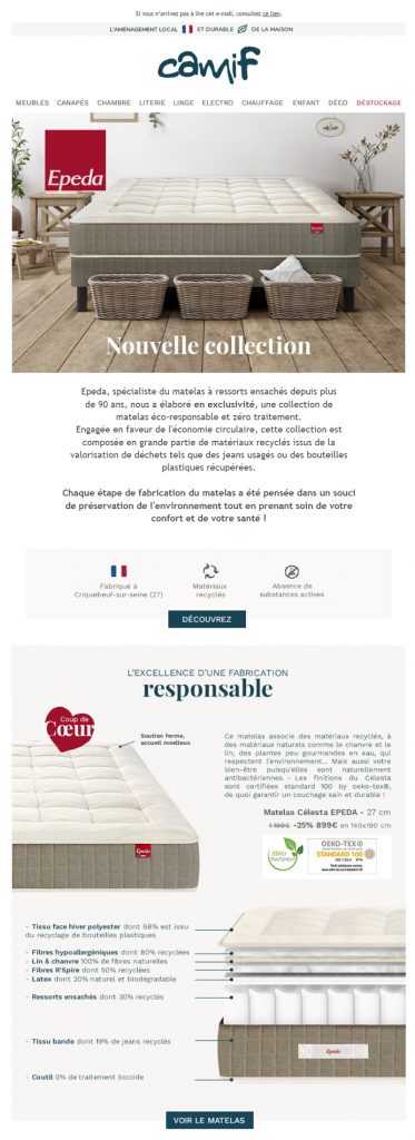 - l’insertion dans cette newsletter d’un visuel en coupe du matelas, précisant la composition complète dès la fiche produit.