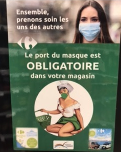 Le Jury de Déontologie Publicitaire a été saisi, le 8 septembre 2021, d’une plainte émanant d’un particulier, tendant à ce qu’il se prononce sur la conformité aux règles déontologiques en vigueur d’une publicité d’un magasin Carrefour situé aux Sables d’Olonne, pour annoncer le port du masque obligatoire à l’intérieur du point de vente.