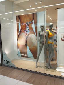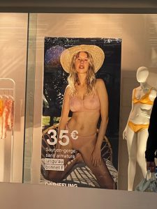 Chacune de ces photographies est positionnée en vitrine, à proximité de mannequins vêtu avec un maillot de bain similaire à celui présenté dans la publicité.