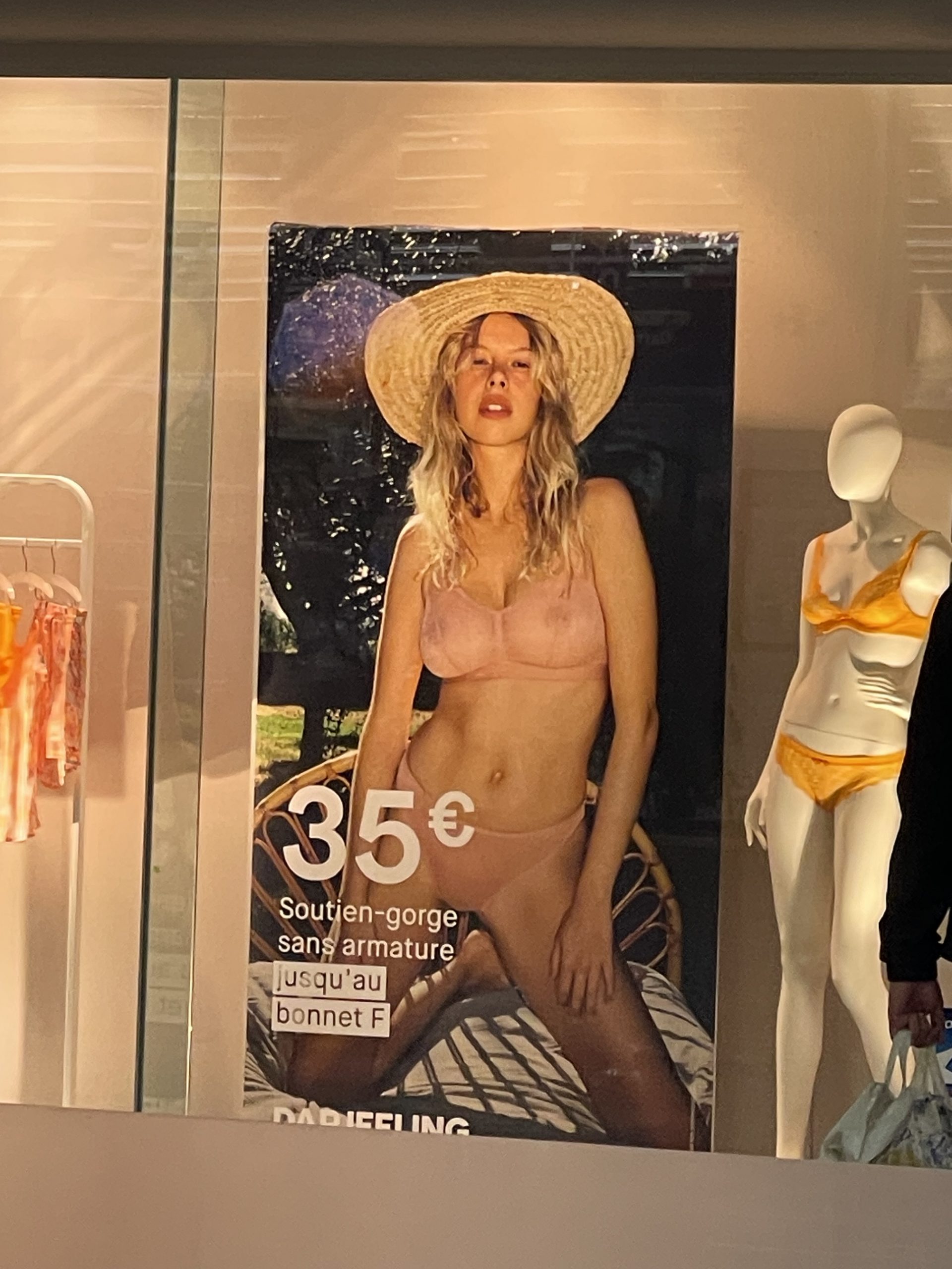 Il ne s’agit pas d’une campagne publique abribus mais de vitrines de magasins de lingerie.