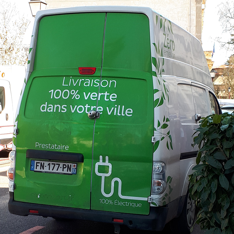 Chronopost a décidé d’investir dans des véhicules électriques qui n’émettent aucune émission de CO2 à l’occasion des services qu’elle rend. Elle le fait savoir – comme d’ailleurs ses concurrents – par les mentions « véhicule électrique » et « zéro émission » sur ses véhicules électriques.