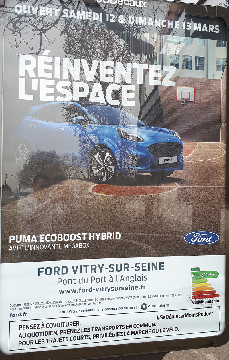 Le Jury de Déontologie Publicitaire a été saisi, le 4 mars 2022, d’une plainte émanant d’un particulier, afin qu’il se prononce sur la conformité aux règles déontologiques en vigueur d’une publicité, diffusée en affichage, en faveur de la concession automobiles Ford à Vitry-sur-Seine, pour promouvoir le modèle de véhicule Ford Puma, à l’occasion des journées Portes ouvertes des 12 et 13 mars 2022.