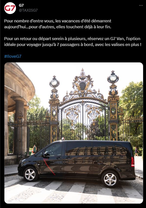 Le Jury de Déontologie Publicitaire a été saisi, le 31 mai 2023, d’une plainte émanant d’un particulier, tendant à ce qu’il se prononce sur la conformité aux règles déontologiques en vigueur de publicités, en faveur de la société G7, pour promouvoir son offre de véhicules taxis G7 Van et sa flotte de taxis à faible émissions de CO2.