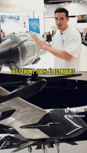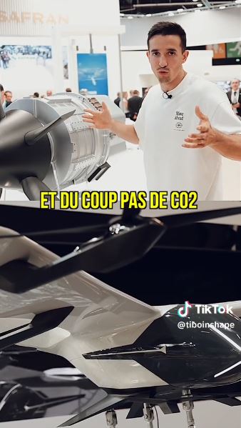 Sur les deux autres « screenshots » « Ils seront 100% électriques » / « Du coup pas de CO2 », le propos de Tibo InShape concerne l’usage du moteur décrit à l’image. Les affirmations de l’influenceur sur la propulsion 100% électrique concernent ainsi spécifiquement les futurs aéronefs dédiés au transport urbain ou périurbain VTOL ou STOL. Le moteur montré à l’image par l’influenceur permettra à ce type d’appareils de voler avec une propulsion sans CO2 via un système électrique.