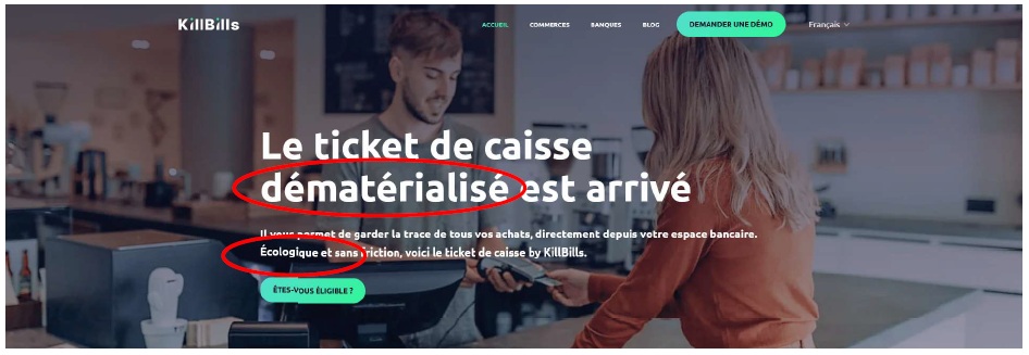 • sur le site Internet : « le ticket de caisse dématérialisé est arrivé…écologique», « bien plus éco-responsable », « une alternative écologique », « un ticket dématérialisé » …