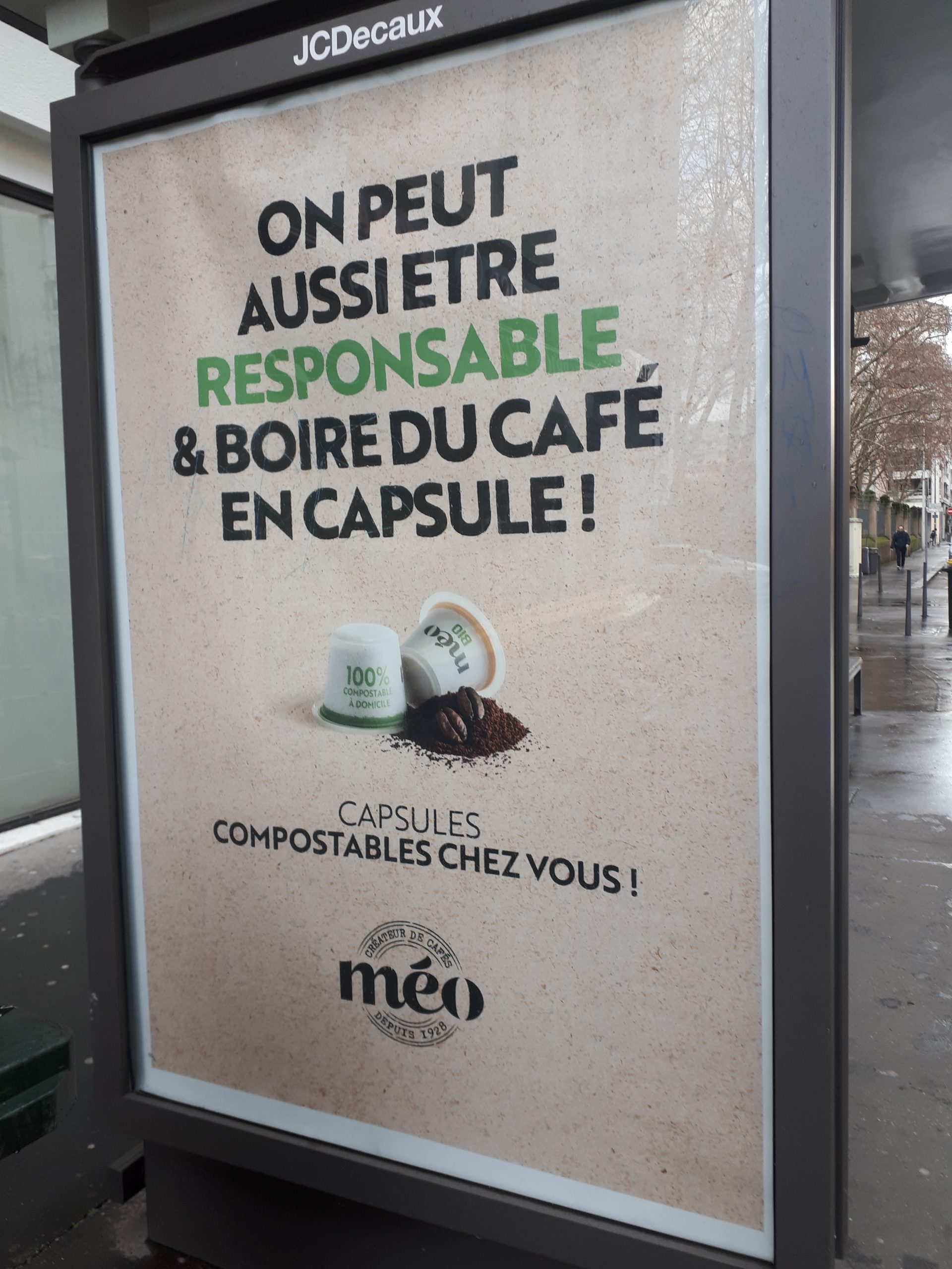 Le mot « responsable » semble être inapproprié selon le plaignant. En l’occurrence, Méo explique qu’elle suggère au consommateur que l’on peut aussi être responsable en utilisant ses capsules compostables à domicile. C’était la seule intention de la campagne, sans vouloir introduire de confusion avec le développement durable au sens large ou une volonté masquée de faire du café une boisson par essence responsable.