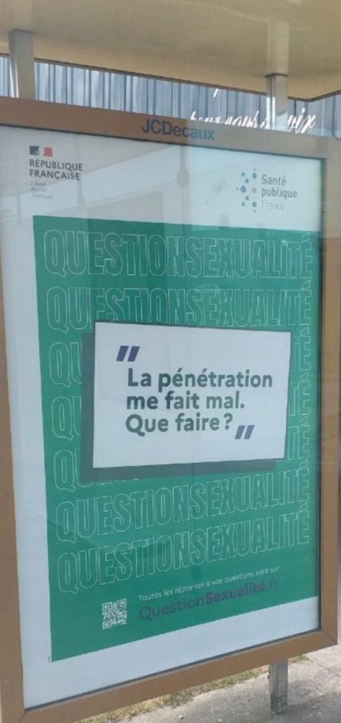 Le Jury relève qu’en l’espèce l’Agence Santé Publique France a diffusé des affichages portant chacune une question sur la sexualité, écrite comme une citation sur un carton blanc imprimé sur un fond coloré, avec en filigrane la mention reproduite à plusieurs reprises « Questionsexualité ». L’affiche principalement mise en cause comporte le texte « La pénétration me fait mal. Que faire ? ». D’autres affiches, visées plus globalement par certaines des plaintes, indiquent « Comment se faire dépister gratuitement du VIH et des IST ? », « Il me force à avoir des relations sexuelles. Est-ce que c’est normal ? ». « Combien ça coûte les capotes ? », « C’est combien la contraception d’urgence ? », « Comment savoir si elle a toujours envie quand on fait l’amour ? », « J’ai oublié de prendre ma pilule, je fais quoi ? ».