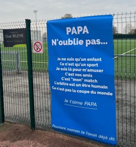 Le Jury relève que la bâche reproduite sur le post Facebook litigieux comporte un texte qui se présente comme émanant d’un enfant inscrit dans le club de football, qui rappelle à son père qu’il ne s’agit que d’un sport, qu’il est là pour s’amuser avec ses amis, que l’arbitre est un être humain (sous-entendu : il doit être respecté comme tel, y compris lorsqu’il commet une erreur d’arbitrage réelle ou supposée) et que « ce n’est pas la coupe du monde ». Il invite ainsi son père à relativiser l’enjeu des compétitions sportives auxquelles participe son fils ou sa fille et, implicitement, à y adapter son comportement en s’abstenant de toute violence physique ou verbale et, plus largement, de toute sur-réaction à l’égard des joueurs, arbitres, entraîneurs et spectateurs. La bâche précise en bas : « Pourtant maman te l’avait déjà dit ».