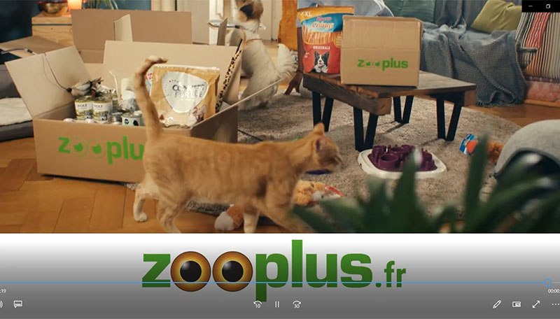 Le film vidéo publicitaire en cause montre un homme regroupant, dans un carton, les jouets usagés de son chien et de son chat, lesquels suivent ses mouvements. L’homme jette ensuite le contenu du carton dans une grande poubelle grise située à l’extérieur. Installé dans son canapé alors que la sonnette retentit, il ouvre la porte à un livreur qui lui apporte des cartons Zooplus dans lesquels se trouvent des jouets neufs et des friandises qu’il offre à ses animaux.